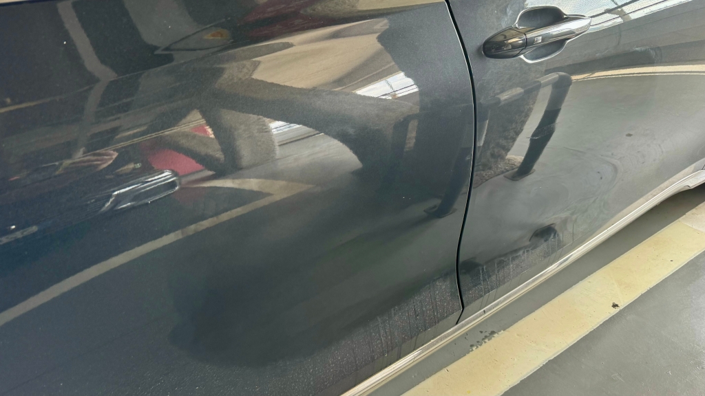안 지워진 부분이 있는데..그걸 오퐈가 손으로 그렇게 컴파운드질을 해도 안 지워졌는데.. 오늘 광택기로 완전 깔끔은 아니고 거의 깔끔하게 다 지웠어용.. 그런데 오늘은 맛보기로 했고.. 아예 세차를 싹 하고 다시 할 건데여.. 우리주인님 모실 건데 차가 깨끗해야 하니까용.. 그리고 그 무선 광택기계에 수건 달아서 자동차 내부 그..가죽 시트도 닦았어요 우리주인님 앉으실 의자니까용.. 그런데 한 번 더 해야 해용 가죽 클리너로 다시.. 그런데..