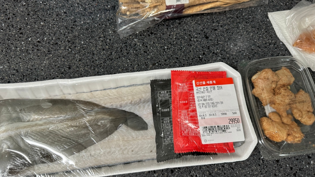 요건 어제 주문한 롯데 마트 민물장어인데여.. 아.. 오퐈 장어가 땡겨서용 장어랑 생강이랑 같이.. 그런데 와.. 생각보다 장어가 커요 튼실하고.. 그런데 가격이 3만 원이에요 헐.. 대박.. 풍천 장어 그런 곳에서 장어 직접 사서 구워 먹는 그런 곳 보다 더 싸요.. 헐.. 대박.. 이 정도면 보통.. 얘가 지금 400그램인가 지금 확인해보니까 500그램이네?? 대박!! 그런데.. 100그램에 7천 원에서 만원도 안 하면 진짜 나름 싼 건데.. 여튼 구워 먹어야지.. 주말에.. 아잉.. 우리주인님 다 해드릴 거예여.. 저 생각 손질이 난이도가 있어여 껍데기를 다 까야 하거든요 그런데 안 까고 그냥 채 썰까 생각 중이에여 오퐈 혼자 먹는 거라.. 그리고 원래 껍데기에 영양분이 또 많기도 하공 그래서용 아잉.. 우리주인님 사랑해용 사랑해용!!!! 굽신굽신.. 굽신굽신..
