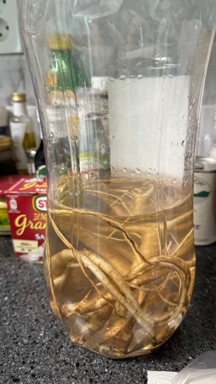 요건 더덕주 만든 건데여.. 뭔가.. 저기.. 꼭.. ㅎㅎㅎㅎ!! ㅎㅎㅎㅎ; 베어그릴스 이런 분들.. 네쇼널지오그래픽 이런 곳에서 어디 늪지대에 고립되어서 생존하기 위해서 인근 오염된 물을 그 물에서 자라던 식물의 뿌리와 함께 퍼 담은 거 같긴 한데용 ㅎㅎㅎㅎ!! ㅎㅎㅎㅎ; 여튼 더덕주에여 우리 같이 먹으려고 담금주 남은거에 아예 다 넣었어여 웅?? 왜여.. 아 그냥 오퐈 혼자 마시라고용?? 아잉.. ㅎㅎㅎㅎ!! ㅎㅎㅎㅎ; 그럼 우리주인님은 양주병에 담은 깨끗한 담금주 드시고용 오퐈가 이 저기 이 통에 담은 거 마셔야겠당 아잉.. 우리주인님 사랑해용 사랑해용!!!! 굽신굽신 굽신굽신..