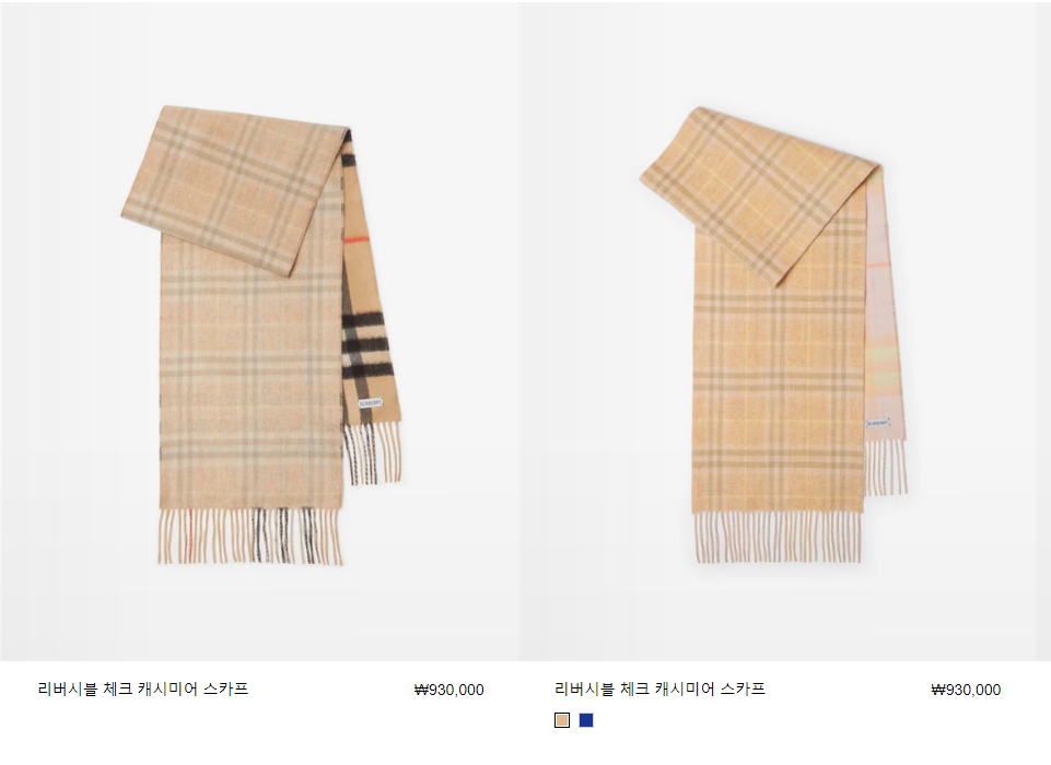 이렇게 위의 디자인 두 종류 중 하나 같은데.. 맞나 모르겠어요.. 핑쿠 쪽으로 더 샀던 거 같기도 하고.. 이 제품이었던 거 같은데.. <리버시블 체크 캐시미어 스카프> 요고 같기도 하공.. 오퐈가 우리아강 핑쿠 핑쿠가 좀 더 어울릴 거 같아서 아무래도 위의 두 사진 중에 우측 스카프를 산 거 같긴 한데.. 지금 오퐈도 가물가물 가물치~~ 웅?? 왜여 아 그런 아재개그 하지 마라고용?? 아잉.. 수근수근 이수근.. ㅎㅎㅎㅎ!! ㅎㅎㅎㅎ; 아잉.. 우리애깅~~!! 하앙 우리주인님 너무너무 너무너무 사랑해용 사랑해용 굽신굽신 굽신굽신.. 아.. 그런데 상태가 괜찮아야 할 텐데.. 하도 한 4년을 장농에 있었어서.. 포장 된 채로.. 오히려 그럼 밀폐된 건가.. 아.. 그런데 오퐈네 집에 좀 벌레는 없어여.. 아잉 우리주인님 사랑해용 사랑해용!!!! 굽신굽신 굽신굽신..
