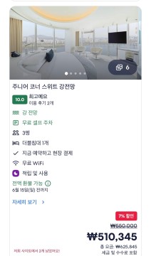 아 야놀자도 주니어 스위트까지네용.. 응.. 호텔스가 그나마 스튜디오 스위트까지고용 응.. 그러면 우리.. 응.. 스튜디오 혹은 주니어 스파 가보시자용 웅?? 아.. 왜냐면요 너무 비싸요 ㅎㅎㅎㅎ!! ㅎㅎㅎㅎ; 웅?? 아.. 그런데 진짜 비싸요 응.. 제값 주고 가기 너무 아깝고 응.. 웅?? 아.. 얼마냐고용? 아.. 코너 스위트가.. 공시가가.. 마운틴 뷰 175만원이고요.. 리버뷰가 180만원인데.. 세금 및 봉사료 별도거든요.. 그러면요..
