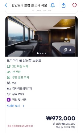 그런데 호텔스 닷컴에는여 최대 스튜디오 까지만 올라오더라고용 응.. 분명 더 있을 텐데.. 응.. 다른 날짜로 검색 다시 해볼까요.. 응.. 어 다른 날짜도 그렇네.. 아.. 예네 호텔에서여 본인들 품위 유지 한다고 하이레벨 그래이드 룸들은 호텔스 닷컴같은 여행 사이트에 안 올렸나 봐요.. 최대 높은 게 스튜디오 스위트네용 응..