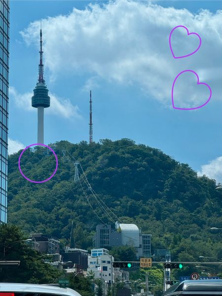 그런데 일단.. 예장 공원에 도착했는데.. 주차 자리가 없는 거예요 항상 자리가 없다가도 오퐈가 가면 하나씩 자리 나고 그랬는데 오늘은 아예 없어서.. 일단 그 전에.. 이제.. 그.. 신백 본점이랑 명동 사이에어.. 그러니까.. 전에 보여드린 뷰인데..