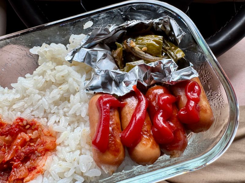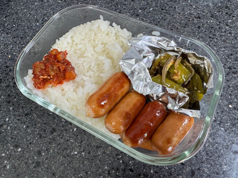 오늘은 비엔나 소세지랑.. 그런데 원래 비엔나 소세지를 문어형식으로 만들던지.. 아니면 중간에 칼집을 내야 하는데 귀찮아서.. 응.. 저 소세지는 한 번 삶은 후에.. 염분기를 최대한 제거 후에 다시 구운 거예요.. 웅?? 아.. 그건 안 귀찮냐고용?? 아.. 그건 그냥 끓는 물에 넣고 끓이면 되는 거라.. 응.. 그리고 이제 어머니께서 만들어주신 고추 멸치 볶음이랑.. 창란 젓.. 응..