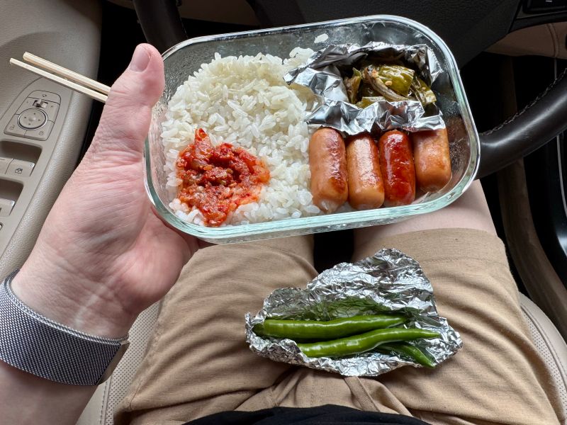 그래서 이제 같이 가지고 간 케찹.. 응.. 햄버거 포장하면 주는 케찹.. 응.. 다들 그러잖아요 안 버리고 모아두고.. 여튼 그래서 예장 공원 앞에 자리가 없어서.. 아.. 어떤 포르쉐가 무개념으로 대충 주차해서 충분히 주차 한 자리 나올 수 있는데.. 암튼.. 일단 밥부터 먹자 해서.. 주차가 좀 그런 상황인데도 그냥 일단 주차 겨우 하고 밥을 먹었어요.. 그리고 이제.. 그냥 가면 좀.. 주차가 너무 좀 그래서.. 응..