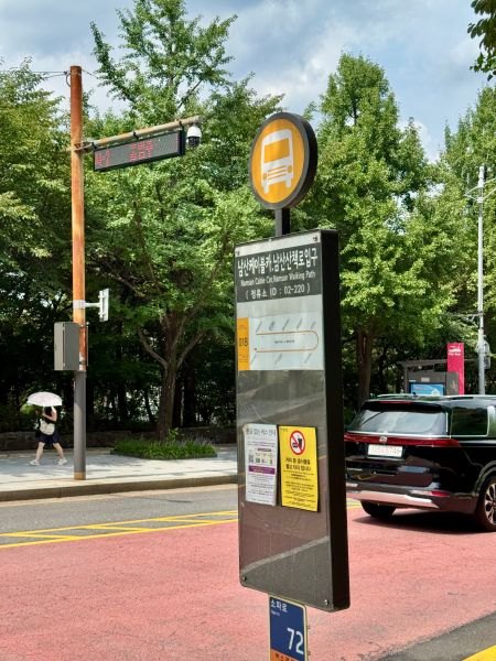 거기에 이렇게 남산 도서관 앞 버스 정거장까지 걸어도 가야 하고.. 그래도 일단.. 걸어서 남산을 오를 수가 없다고 생각 했으니.. 괜히 다리 완벽하게 나아야 하는데 좀 그러면 어쩌나 이 생각도 있고.. 솔직히 날도 덥고 해서 버스타고 올라가야지.. 하고..
