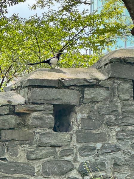 이렇게 성벽이 있는데.. 까치가 한 마리 성벽에 앉더니.. 얘가 나는 게 아니라 오퐈 옆에서 같이 저 성벽을 하나씩 올라요.. 응.. 신기하게.. 응.. 그런데 이런 경우가 많아서 ㅎㅎㅎㅎ!! ㅎㅎㅎㅎ!! 속으로 “아.. 대왕님..” 하고는.. “저 왔습니다..” 하면서 그런데