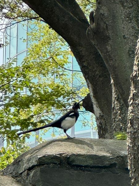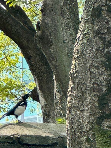 오퐈가 그 까치 사진찍으니까 좌측 하단의 외국 여성 분도 까치 보다가 오퐈 보고는 웃어요 신기하네 하듯이.. 그래서 오퐈가 손 흔들면서 “하이..” 하고 미소 짓고..