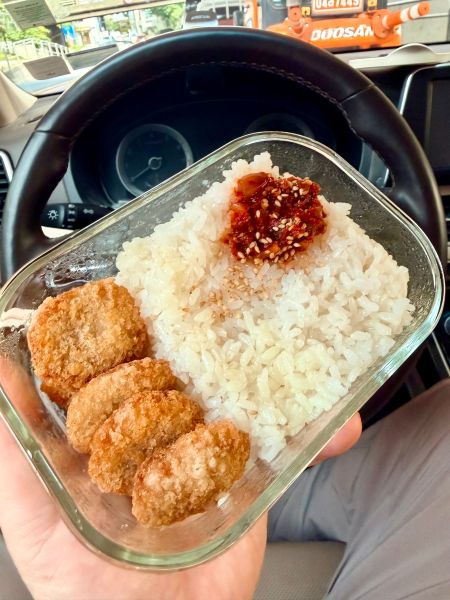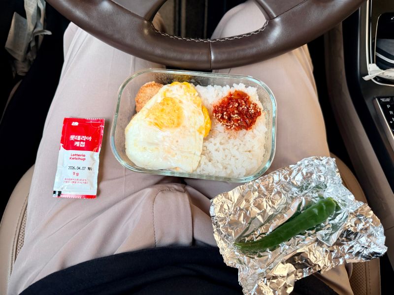 경기 이천쌀 최상등급.. 도시락으로 싼 밥인데.. 하앙.. 싸는 거 좋앙.. 아.. 아니.. 저기 도시락인데도 밥에 윤기가.. 진짜 맛있어요 응.. 우리아가님 다 해드릴 거얌..