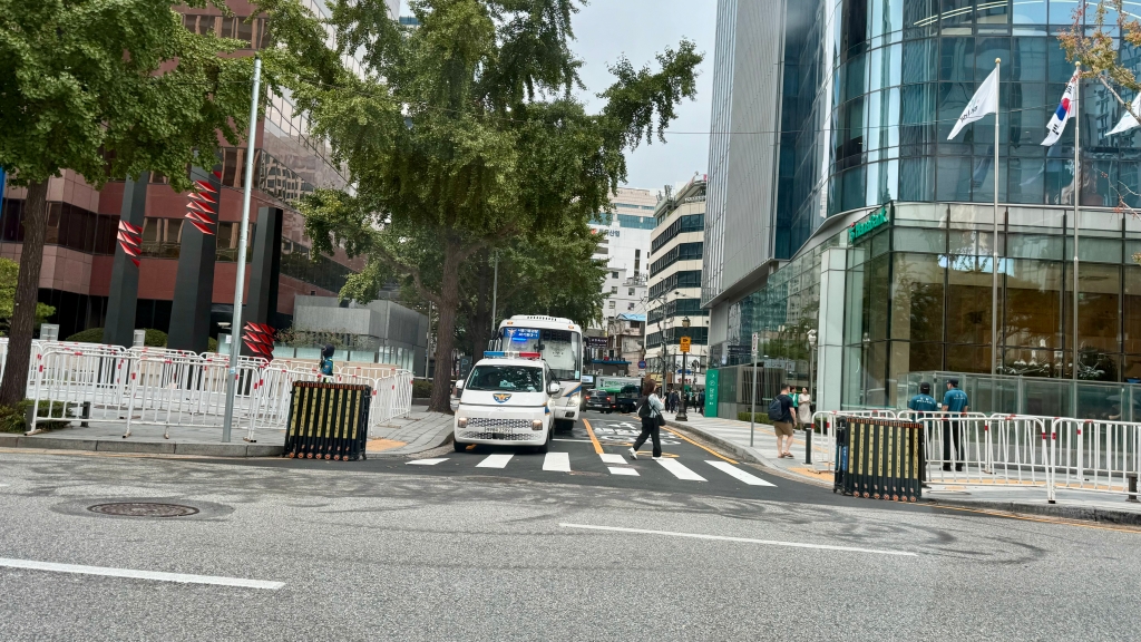 우앙.. 롯백 본점에 가는데.. 오늘 왤케 막히나 했더니 와.. 총리 경호가.. 완전 서울 중구를 다 다 아주 경찰차랑 경찰 인력으로 다 메꿨어요.. 롯데호텔 서울 본점 정문인데요.. 지금 정문 전체를 천으로 가린 거예요.. 저기서 총리 내리니까용 아무래도 저격 방어 용 같아요 와 대박이더라고용.. 이런 건 또 첨 봐요..
