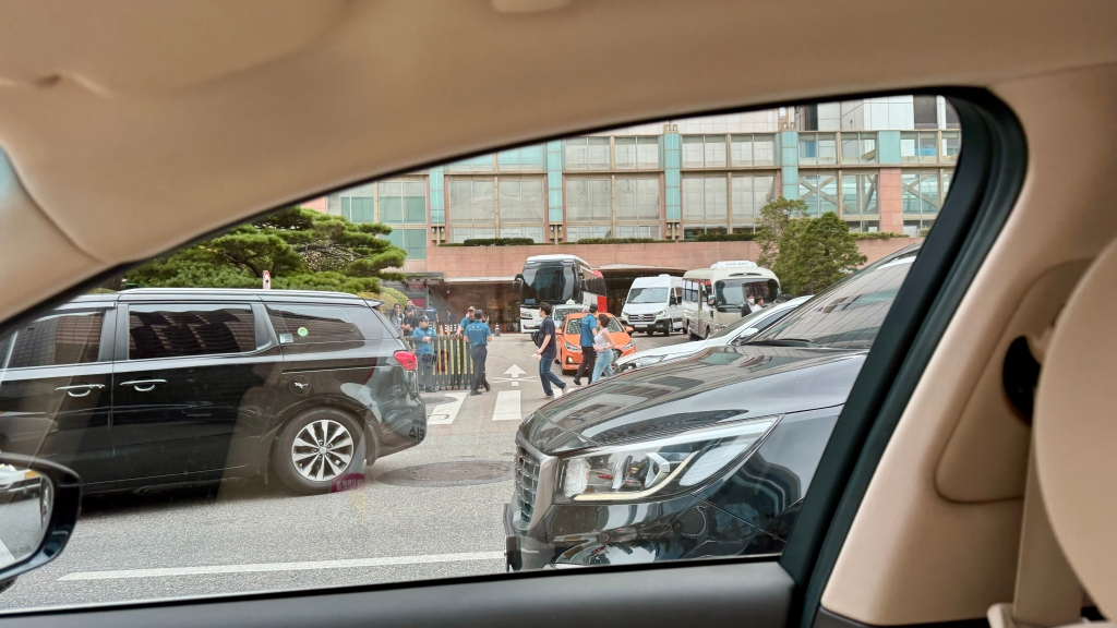 위의 사진에서 보시면요.. 좌측이 다 일본 경호원 차량들이에요.. 호텔리어 분들 되게 고생 하시던데.. 호텔 하나를 다 통으로 아주.. 다 경호 중이에용.. 이런 날엔.. 꼭.. 저기.. 롯백 본점 지하랑 롯데 호텔 본점 지상이랑 연결되는 통로까지 사복 경찰들이 다 경비 서요.. 그러면요 오퐈가 멀뚱멀뚱 보면서 가면요.. 이 분들이 괜히 눈 피한다요.. 그런 거 있잖아요 만화에서 보면 애니에서 보면 눈 (ㅡ_ㅡ)이런 애들이.. 키가 작든 크던 귀엽든 어떻든.. 이런 케릭터들이 “뭐냥..” 하듯이.. 아니면.. 시큰둥 한 표정 있잖아여.. 오퐈가 잘 그러거든요.. “또 경호하넹..” 하면서.. 그러면 이 분들이 막 딴청 피워요.. ㅎㅎㅎㅎ; ㅎㅎㅎㅎ; 아잉 우리주인님 사랑해용 사랑해용!!!! 굽신굽신 굽신굽신..