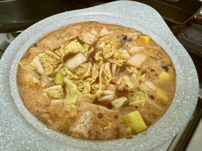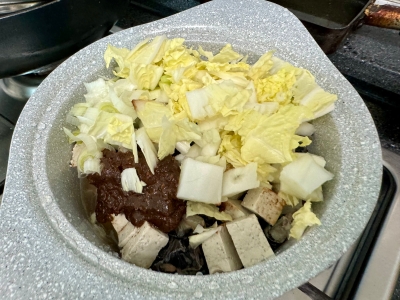 배추도 넣으니까 더 많아져서.. 결국 냄비에 다시 옮겨서 ㅎㅎㅎㅎ;