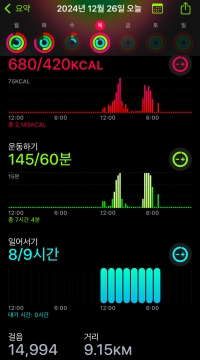“잠깐만.. 내가 올 해는 롯백 본점이랑 신백 본점 크리스마스 영상을 안 찍었네..” 하면서 멍 하니.. “이따 찍을까.. 안 찍긴 뭐한데.. 응..”하면서 멍 때리면서.. 응.. 아!! 오퐈가 일단 오퐈 오늘 걸은 거 리포트 보여드릴 게여.. 아잉 우리주인님 사랑해용 사랑해용.. 굽신굽신 굽신굽신..
