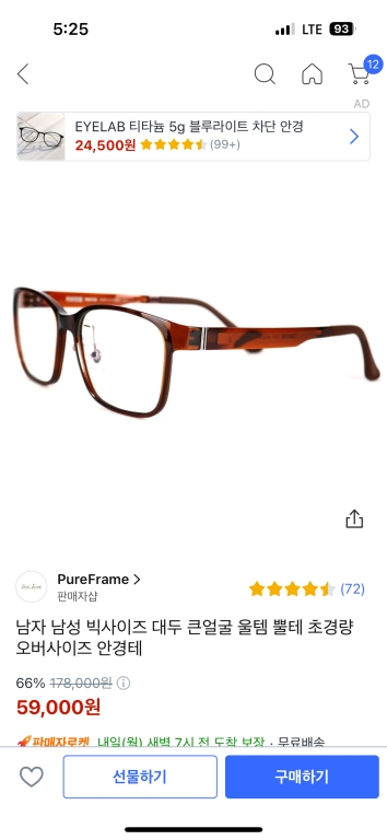 투 브릿지가 예쁘던데.. 그런데.. 사이즈 보니까 오퐈 얼굴에 좀 간당 간당 해서 ㅎㅎㅎㅎ!! ㅎㅎㅎㅎ!! 아까 오퐈가.. ㅋㅋㅋㅋ ㅋㅋㅋㅋ!! ㅋㅋㅋㅋ!! 오퐈가 ㅋㅋㅋㅋ!! 저기.. ㅎㅎㅎㅎ!! ㅎㅎㅎㅎ; 아.. ㅎㅎㅎㅎ; 그.. 거울 보면서 혼자.. 플라스틱 자로.. 오퐈 얼굴 가로 사이즈 재는데.. 오퐈가 “어.. 내 얼굴이 이렇게 크다고!!” 하면서 ㅎㅎㅎㅎ!! ㅎㅎㅎㅎ!! 그래서 ㅎㅎㅎㅎ!! 일단 가격은 다른 안경 보다 비싼데.. 그래도 사이즈가 좀 여유가 있어서요 대두 안경이라고 하고.. 아예 정말 얼굴 크신 분을 위해 만든 그런 안경회사더라고요.. 국산 회사..