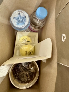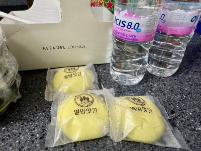 그래가지구.. 쇼핑백에 담긴 내용물 보니까여.. 헐!! 진짜 다과였네?? 하고.. 맨 위에 그 작은 생수 두 통.. 중간이 떡 같은 걸 주셔서. 그것도 세 개.. 응.. 그리고 맨 밑이 아아.. 그런데 아아 컵 홀더가 전에는 에비뉴엘 바 라고 써있었는데.. 이제는 라운지라고 써있는데 우아.. ㅎㅎㅎㅎ!! ㅎㅎㅎㅎ;