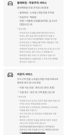 우아 그런데 진정한 MVG라인으로 들어 섰어용 이젠 롯백 서울 본점은 오퐈 발렛도 해줘요 오렌지 파킹 구역에서.. 응.. 일요일에 오퐈네 부모님 집에 들렸다가 오퐈 오렌지 등급 주차권 신청했는데 그거 받을겸 들렀다만 오려고용 주말이면 롯백 서울 본점 주차 대기 엄청 긴데.. 과연 오렌지 등급 발렛은 어떨지 두근두근.. 우아 ㅎㅎㅎㅎ!! ㅎㅎㅎㅎ; 와 그런데.. 프라이빗 룸도 한 달에 한 번 이용 가능하다는데.. 우리 여기서 응.. 우리 여기서 울 대화 나누셔도 좋을 거 같아용 오퐈가 프라이빗 룸 후기를 응..