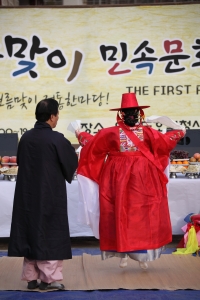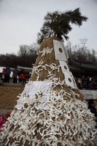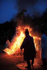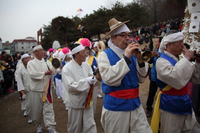 이렇게 삼현육각이라고 하는 우리나라 조선시대 전통 관현악 공연도 하고..그런데 이 모든 게 다 연결 되어 있어요.. 응.. 토속 신앙의 잔치인 대보름 달집태우기 행사 하나에 다 하나로 통합 되는 그런 일종의 큰 제사죠.. 응..