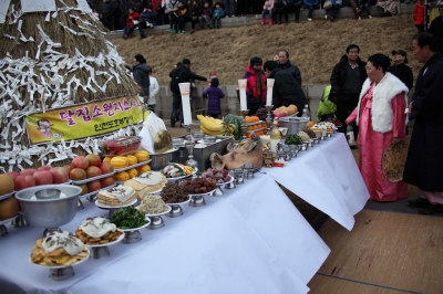 이렇게 대보름날 태울 달집 앞에 제사상을 크게 차리고