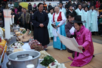 이렇게 무형문화재 분께서 제를 지내시는 거예요 이때 만신무당이 제를 지내시기도 하고 또.. 여튼.. 응.. 즉 꽤 큰 행사에서 전통적으로 이어진 무형문화재로서의 제를 지내주시는 분들이기도 하고.. 또 다른 면으론.. 한강 강북 쪽.. 즉 한양의 위쪽.. 여기 서는 만신이라고 하여 만가지 신을 모시는 분을 뜻하며 원래 만신 무당이 사전적인 의미로는 무속인 분을 높여 부르는 말인데 무속인 분들 사이에서의 만신은..