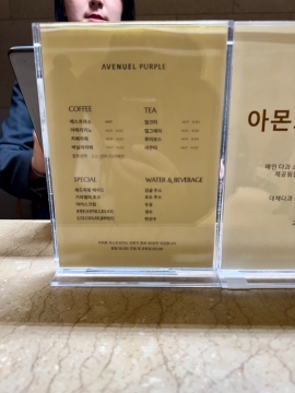 아.. 사진이 작아서 메뉴가 잘 안 보이실 건뎅.. 메뉴가 에비뉴엘 바는 한 다섯 가지?? 그런데 여기는 종류가 많아요 우아.. 오퐌 오늘 얼그레이 마셨어요 따뜻한 거..