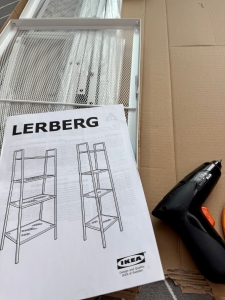 이제 조립을 시작해야죠.. 응.. 설명서는 주로 주의 사항이 몇 개 국어로 적혀 있고 조립용 설명서는 1-2페이지 분량이에요 ㅎㅎㅎㅎ; 우측의 핸드 드릴도 이케아에서 예전에 몇 년 전에 산 건데요 은근히 요긴하게 쓰여요.. 응..