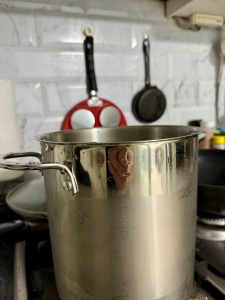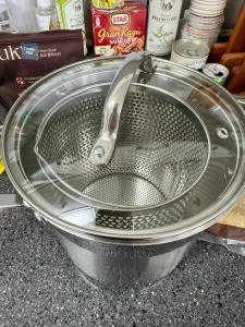 아까 롯백에서 산.. 독일제 응.. 그런데 메이드 인 차이나에요 ㅎㅎㅎㅎ!! ㅎㅎㅎㅎ; 여튼 독일제 파스타 냄비.. 응.. 안에 냄비를 따로 분리 할 수 있게 분리형 손잡이 달린 채반도 있어여.. 응.. 그런데 사용 전에 스테인레스로 된 냄비여서 일단 전에 세척부터 꼼꼼하게 해야지용.. 응..