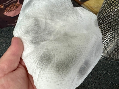 식용유를 바른 주방티슈로 깨끗하게.. 응.. 스테인레스라서 연마 할 때 나온 스테인레스 찌꺼기가 있어서용.. 그걸 다 닦았어요 꼼꼼하게. 응.. 왜냐면 우리주인님 이 용기에 우리애깅 어묵탕 어묵꼬치도 만들어 드리고 그럴 거거든요 응.. 우리주인님 음식 해드릴 때 사용하려고 산 거여서용 웅..
