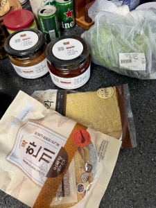 그리고 삼진 어묵 어묵탕에 넣을 거 두 종류 그리고 쌈채소 유기농이라 비싸요.. 응 우리주인님 다 해드릴 거예요 응.. 그리고 어쩌다 보니.. 기순도 고추장 된장.. 응..