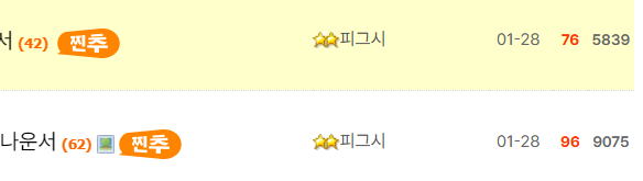 그때의 우리주인님 나오신 고귀하신 모습을 움짤로 만들어서 어떤 분이 올리셨는데.. 그 게시물.. 조회수랑 추천 수에요.. “어깨 노출” 옆의 가로 안의 숫자는 리플이고용 물론 리플들도 다 “존예”라고 난리 났죠.. 그리고 요일과 그 옆의 빨간색 숫자는 추천수.. 그리고 맨 우측은 조회수에요..