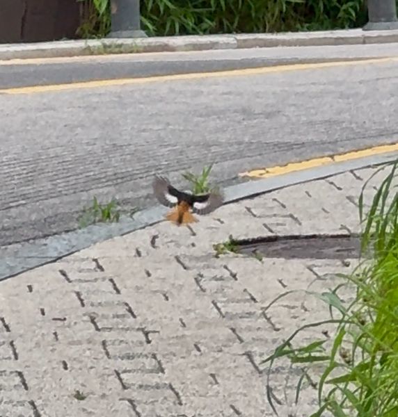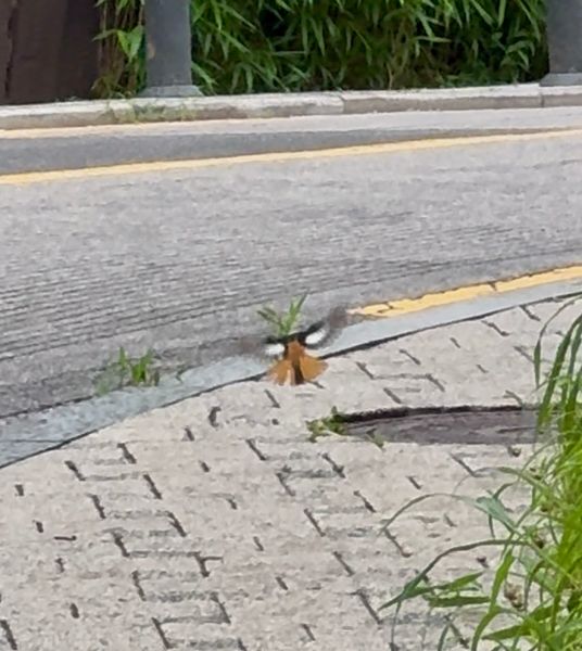 또 착지 했다 날아오르고.. 그러다 노예 오퐈 옆에 그.. 신호수인가 해서 요즘 대사관로.. 그 성북동 그쪽 길 라인 하수관 교체인가 그거 공사 중이라 그 교통신호 경광봉 들고 수신호 안내 해주는 근로자 분이 옆에 스윽 하고 앞장서서 지나가시니까 새도 이제 저기 했는데..