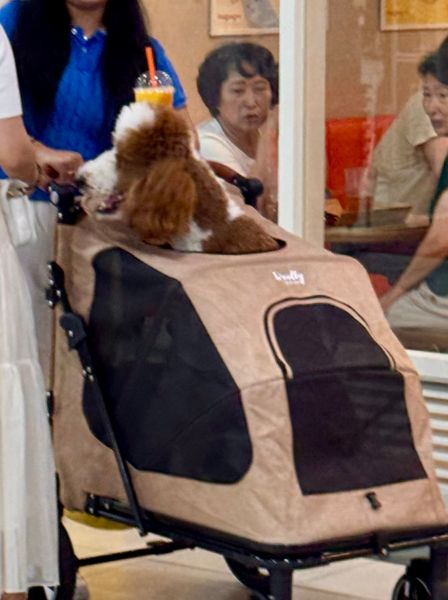 이 강아지 엄청 컸어요.. 그 푸들인가 뭐라더라 원래 엄청 큰 강아지인데 품종 개량으로 사이즈 작은 애들도 있고 한.. 강아지.. 그 .. 아.. 스탠다드 푸들이라고 하네요.. 응.. 그 푸들인데 얘가 공 가지고 공을 씹으니까 삑삑 소리나는데.. 저 큰 얼굴이 사람 얼굴만한 게 나왔다 들어갔다 하니까 사람들이 다 쳐다보고.. 그 여기가 이마트 입구 주변이거든요 지하 1층..