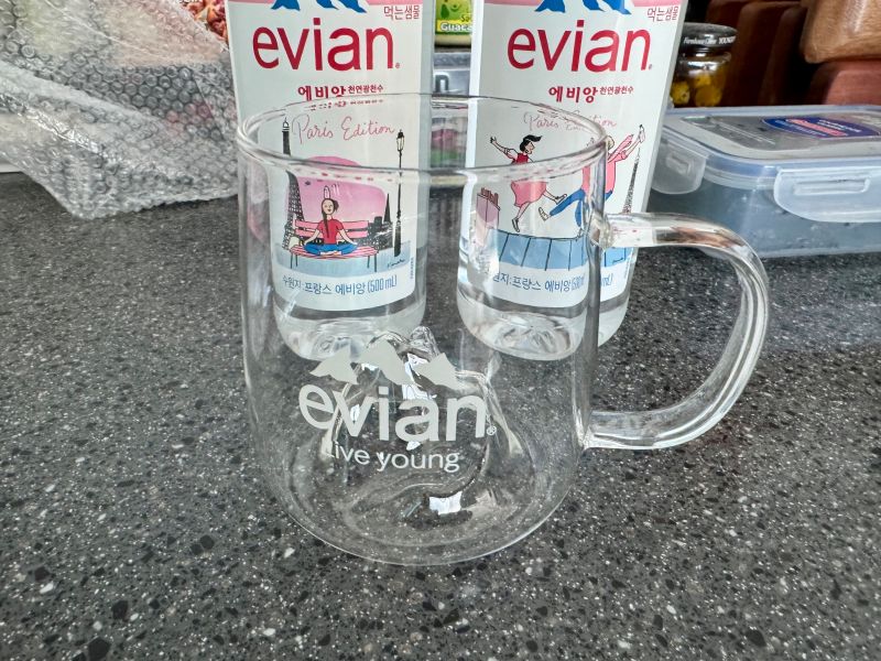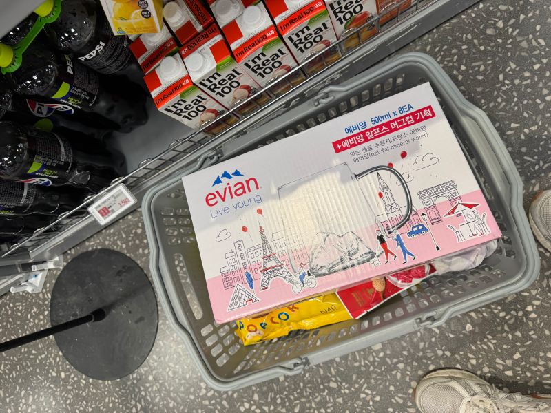 이마트에서는 진짜 돈 잘 안 쓰는데.. 에비앙 행사를 하더라고요.. 컵을 주는데..
