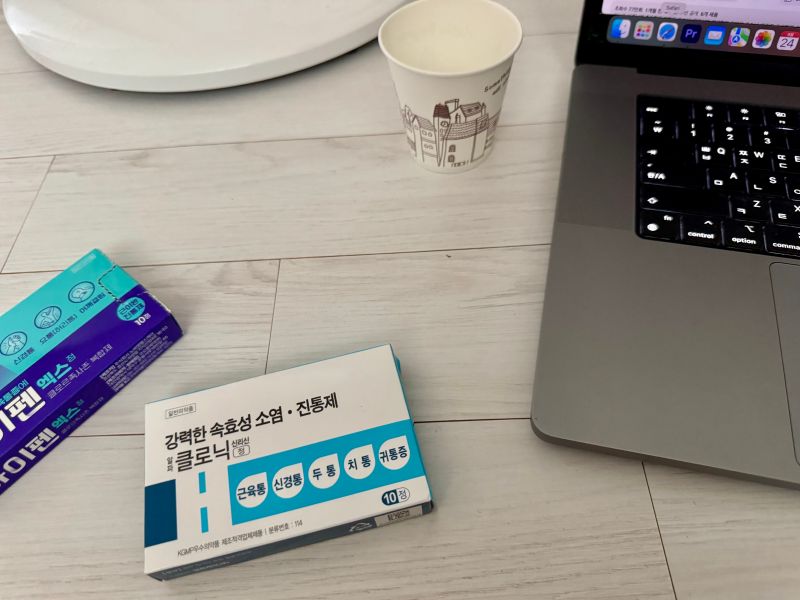 우아 그런데 진짜 와 어제는 와.. 무릎 전체가 와.. 약을요.. 과장해서 어떻게 먹었냐면요.. 소염제 중에 쎈 거 있는데 그거랑 근육통 해소 해주는 거랑 두 개 같이 해서 약국서 먹으라는 대로 준 약이 있는데.. 비상약은 항상 집에 있거든요.. 응.. 기본적인 해열제, 진통제, 소염제 이런 거는.. 그런데 이걸.. 와 그 약을.. 4회 먹을 분량을.. 어제.. 아프기 시작하면서.. 연속해서 먹었어요 한 1-2시간 텀 두고.. 그 정도로 아팠어요..