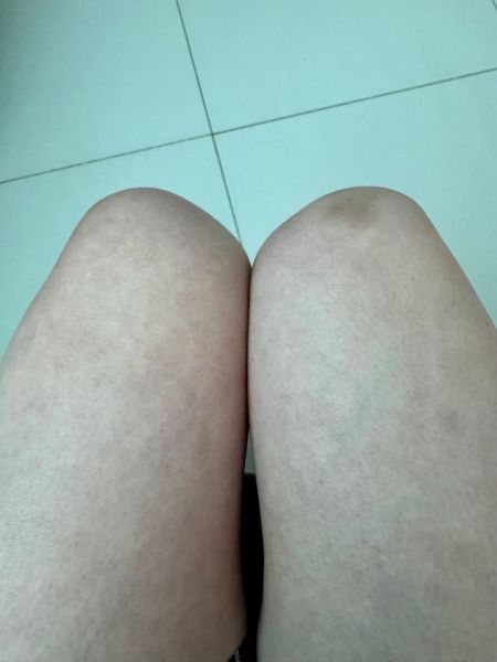 이건 오늘 아침에 찍은 오퐈 다리인데요.. 아.. 눈에 해로운 거 보여드려서 죄송해요 응.. 그런데 보시면요 좌측 무릎 부었던 거 가라앉은 거 보이세용?? 어제 사진이랑 비교 해보시면요..