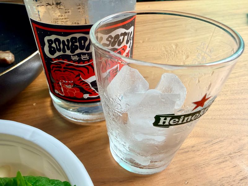 저 저게 위험한 게.. 그 신동엽 님이 그러신다면서요 기분 좋으시면 얼음담긴 글래스에 소주 드시기도 하시고.. 그런데 저게 진짜 위험한 게.. 마시다 보면 확 가요.. 얼음 때문에 도수에 무뎌지면서 술술 넘어가다 어느 순간 확 가요.. 오퐈도 아까 고기 다 먹고 호두랑 같이 홀짝 홀짝.. 마시는데 어느 순간 자더라고용..; ㅎㅎㅎㅎ; ㅎㅎㅎㅎ; 그래서 자고 일어나 보니까.. 응.. 시간이.. 그랬죠..