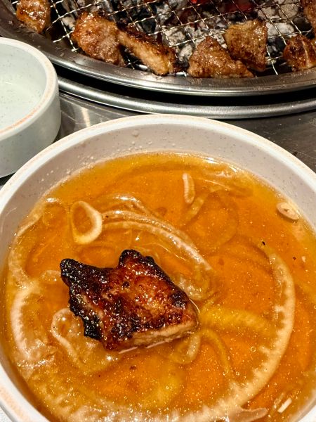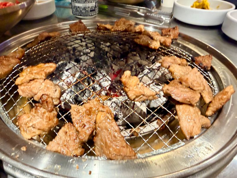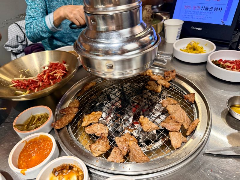 그런데 사진이 좀 흔들렸네..; 아이폰 17프로도 어두운 곳에서 찍을 땐 안 흔들리게 촬영 시간을 좀 조절 해야겠네.. 여튼.. 그런데 보시면요 위의 사진 처럼 좀 탄 거 있죠 양념 돼지갈비인데 탄 거.. 응.. 예전에 오퐈는 탄 고기 몸에 안 저기 한다는 이야기 듣고 이 탄 고기나 연기가 발암물질이기도 하잖아요 특히 연기.. 그런데 오퐈가 양념 갈비를 자주 먹는 것은 아니니까.. 그런데 오퐌 양념 보단 무조건 생고기가 첫 번째인데.. 그런데 진짜 어느 날은 양념 돼지 갈비가 몹시 땡기는 날이 있긴 하잖아요..