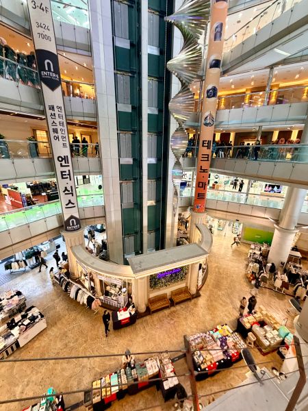 그래도 나름 실내 인테리어 여전히 크긴 해용.. 응.. 그래도 여기에 진짜 대형 의류매장들도 많았고.. 상점들도 많았는데.. 일단 1차적으로.. 테크노 마트 건물이 기운다는 이야기가 있었던가.. 아 맞다 그게 아니라 진동이었지.. <강변 테크노마트 진동 사건 : 나무 위키 자료> 그때 일단 1차적으로 문제가.. 응.. 왜냐면 일단 사람들이 여길 안 가기 시작했어요.. 거기에 손님이 없으니 상점들이 문을 저기 하기 시작하고.. 지금도 보면요 빈 상점 자리들이 되게 많아요.. 한때는 그래서 여기 관리비만 내고 입점하셔라 이런 이야기도 있었고 그랬는데..