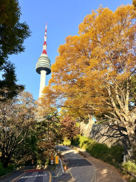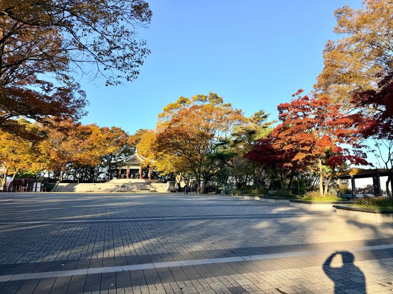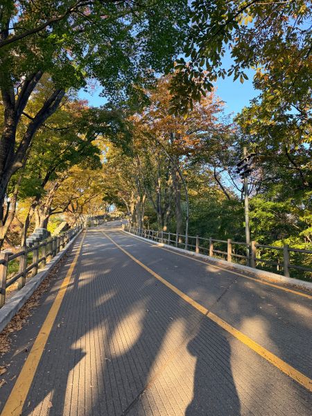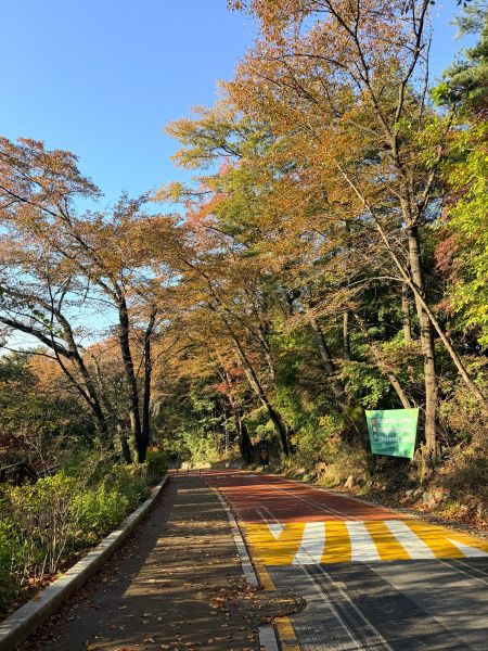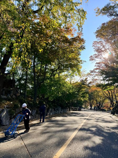 가을 풍경 멋있죠.. 하늘도 파랗고 아직 이른 아침이라 응.. 더 운치 있어요..