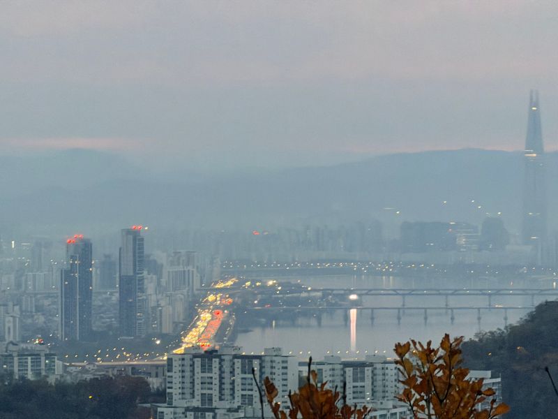 도착하고 보니 아직도 어두워요.. 구름의 영향도 있지만 7시 전이었거든요.. 도착도 빠르게!! ㅎㅎㅎㅎ 그런데 와 7시 전인데 저기 성수동 겔러리아 포레였던가요 저 건물.. 하나는 아크로 포레스트고.. 여튼 거기 앞에 강변북로 상하행선 둘다 꽉 찬 거 보이시죠 대박이다.. 어딜 가시는 걸까요.. 놀러 가시는 걸까요