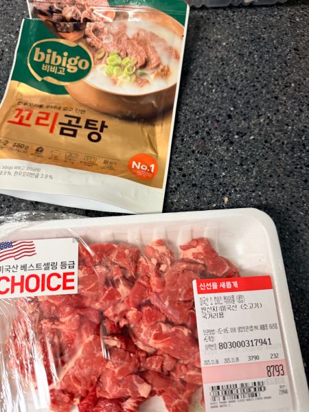 내일 부모님 오시는데 원래 아버지 육회해드려야 하는데 청량리를 요즘 못 가서.. 그냥 잠실에서 육회거리 사도 되긴 하는데.. 200그램에 만원인가 그래서요.. 그런데 청량리는 600그램 한 근에, 즉 세 배에 1만 5천원 ㅎㅎㅎㅎ; 그래서 그냥 국거리용 소고기 사서 저 곰탕에 넣고 물을 더 넣고 양념 넣고 해서 소고기 국 만들었어요 응.. 두 분이 같이 드시라고용 이따 소고기 기름이랑 고기 끓이면 발생하는 그.. 단백질 응고 된 그 찌거기 같은 게 있는데 그거 다 저기 해야 해서용
