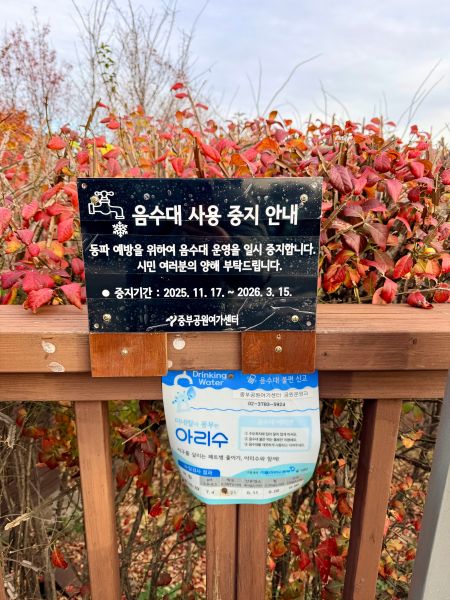 목이 말랐는데 오늘부터 음수대 사용 저기래요.. 헐.. 음수대 조차 오늘부터 저기넹.. 응.. 그래서 물도 못 마시고.. 여기 와서 시원하게 물을 마시는 게 낙 중에 하나인데.. 응..