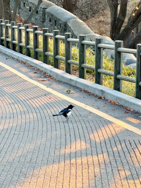 그런데 어떻게 까치 울음 소리로 힐링을 받지.. 그쵸.. 그런데 되게 신기했어요 갑자기 뜬금없이 낯익은 까치 두 마리가 오퐈 머리 위에서.. 오퐈 옆에 있는 2층짜리 건물의 옥상난간에서 엄청 크게도 울더라고요 주변 사람들도 뭐야?? 하고 볼 정도로 그냥 우리가 흔히 멀리서, 나무 위에서 들리던 까치 소리가 아니라 바로 위에서 어찌나 계속 소리를 내는지 주변에 사람들도 “뭐야??” 하듯 위로 올려다 보는데 아공 그런데 언제 시간이 이렇게 응..