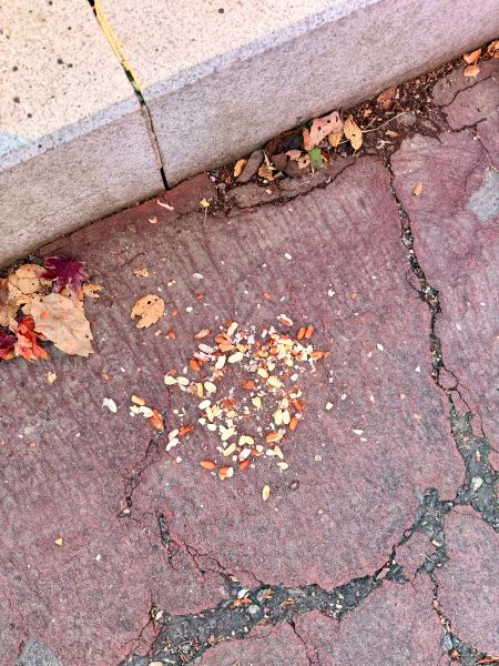 요렇게 있던 땅콩인데 다시 손으로 주워서 언덕 아래.. 남산 언덕의 초입 부분에 전에도 놓아드린 적 있어서 거기에 놓았어요.. 그런데 그래도 모습을 보이지 않으시더라고요 오늘은 참 신기한 날이기도 하고.. 물론 오퐈가 좋아하는 작고 예쁜 새가 있는데 그 새도 노래하듯 날아다니고 참 멋졌는데.. 그런데 유독.. 잠두봉 까치 커플이 안 보이세요..