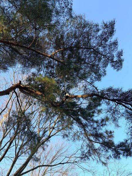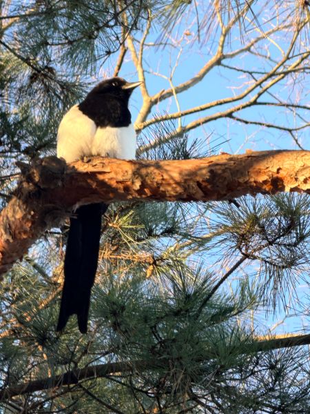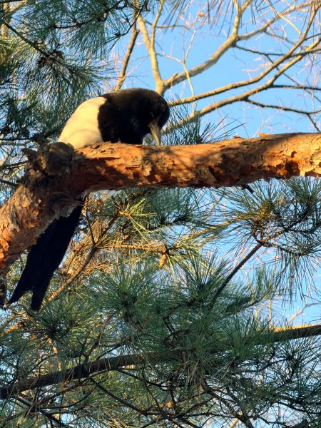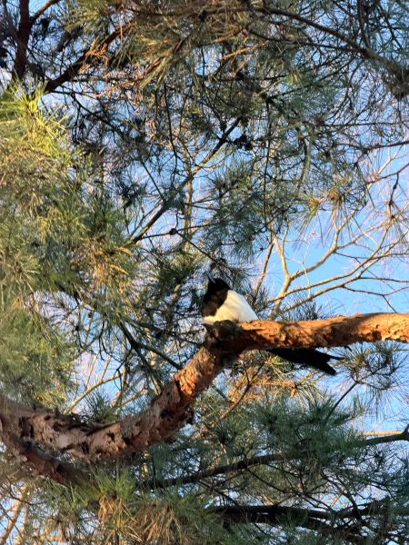 그란데 이번엔 오퐈 머리 바로 위의 나무에 앉아 계시네.. 잠두봉 까치 님 특징이 머리 위로 그렇게 올라와요..; 응.. 신기하기도 하고..