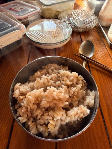아 아침에 하신 따끈한 잡곡밥.. 응.. 어머니가 해주신 달걀후라이 두 장.. 위에 랩 씌우신 거.. 오퐈가 집에 가겠다고 전화 했더니 바로 만드셨는지.. 응.. 그런데 그 사이 식을 까봐 이렇게.. 그런데 어머니께서 해주신 달걀후라이는 묘하게 더 맛있어요.. 진짜로.. 응.. 맛소금으로 하신 것도 아닌데 희한하게 응.. 그리고 집반찬들..