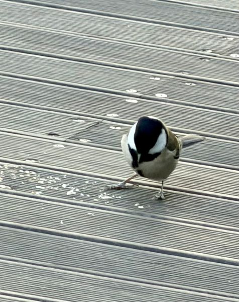 그런데 잠두봉 까치 커플이 큰 건더기 다 주워 먹으니까.. 그 오퐈가 펜치로 아몬드 부술 때 나온 부스러기가 있는데.. 그걸 이번엔 요 작은 새가 먹어요.. 저 새 오퐈가 되게 좋아하는 새거든요.. 가끔 대왕 님이 오퐈 보라고 새 날아다니는 거 보여주실 떄 있는데 그때 보이는 새이기도 한데.. 참새보다 작아요.. 되게 작아요.. 엄청 귀여워요..
