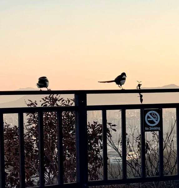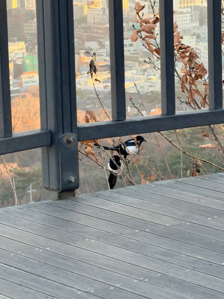 잠두봉 까치 커플.. 어쩜 이렇게 붙어 다니는지.. 아까는 그래서 보니까 위의 사진쪽 아래에서 자꾸 뭘 입에 물고 어딘가로 마치 보관을 하듯 자꾸 뭘 날라요.. 응.. 복슬이 까치님이.. 그래서 뭐지.. 하고 보니까.. 위의 사진 속 까치 커플 밑에 누군가가 뭔가 과자?? 여튼 뭘가 부스러기 같은 걸 한 가득 뿌렸어요..; 아.. 그러면 아니 되는데.. 응.. 그런 거는 좀.. 그런데 이 까치 님들이.. 그걸 어딘가로 보관 하려고.. 지금 다 못 먹으니까 저장하려고 계속 입으로 집어다가 나르는 거예요 와 똑똑이들..