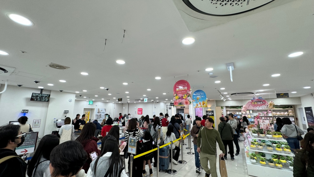 계산 줄도 엄청나요.. 그런데 외국 분들이 대부분이라 계산을 잘 못하셔서.. 셀프 계산.. 그래서 직원 분들이 거의 날아다녀요.. 여튼 1천 원 방석 아이템 획득 후에..