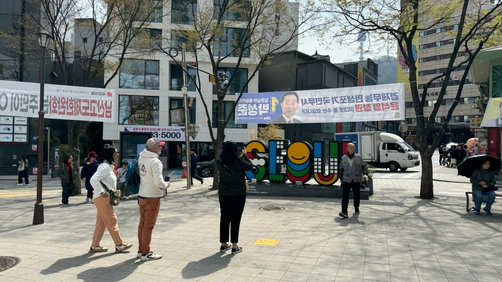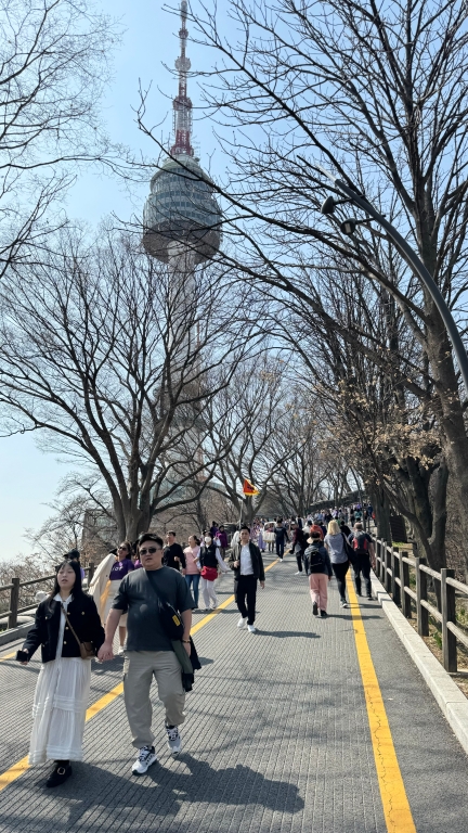 사람 무지하게 많은데요 베트남 쪽 분들 같으신데 퍼플색상 의상이 이 분들 오늘의 드레스 코드셨는지 위의 사진 뒤쪽에 저기 위쪽에.. 보라색 의상 입으신 분들이.. 그런데 지금 보이시는 분들은 다 돈이 좀 있으신 분들이어서.. 옷들이 완전 화려하신데 우아.. 베트남이시든 어디시든.. 다들.. 그리고 한국을 여행지로 선택해주신 고마운 분들이시고용.. 참 재밌는 점들이.. 명동을 지나다 보면 K팝 나오잖아요.. 그러면 동서양을 막론하고.. 꼭 몇몇 분들이 신나서 따라 불러요 외국 분들이.. 특히 명동에서는 길거리에서 춤도 추세요.. 여성 분 남성 분 할 거 없이.. 이탈리아 분들이신신지 그냥 추세요 바로 ㅎㅎㅎㅎ!! ㅎㅎㅎㅎ!! 남산에서도 그래요.. 동서양을 막론하고 모두다 그래요.. 엄마와 딸 까지 두 모녀 분들이 서양 분들이신데.. 두 모녀가 케이팝 노래에 맞춰서..