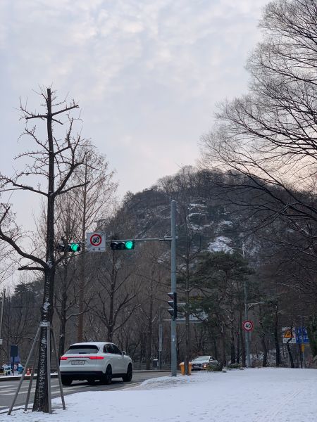 눈이 왔었어요.. 응 오늘 아침에.. 남들이 밟지 않은 눈이 쌓인 곳에 오퐈의 발자국을.. 응..